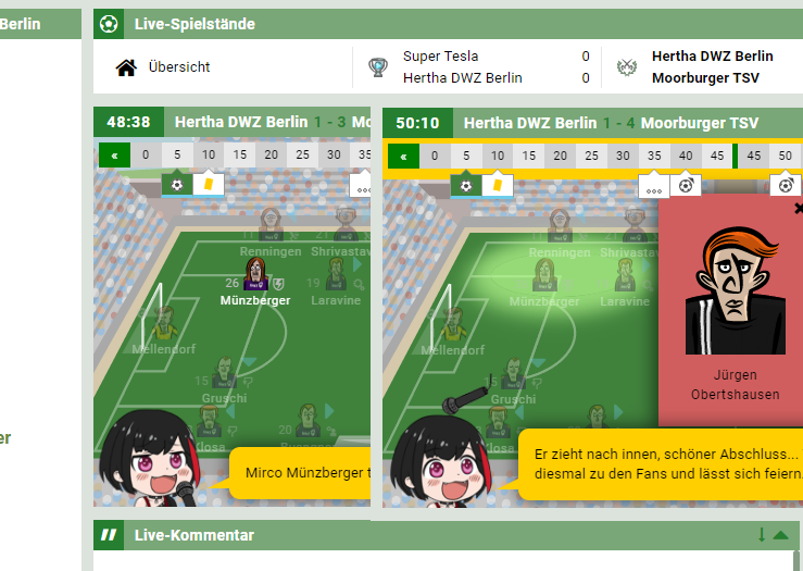 Wie bei HT werden mehrere Events generiert (Torchancen, SE’s), welche irgendwann im Spiel